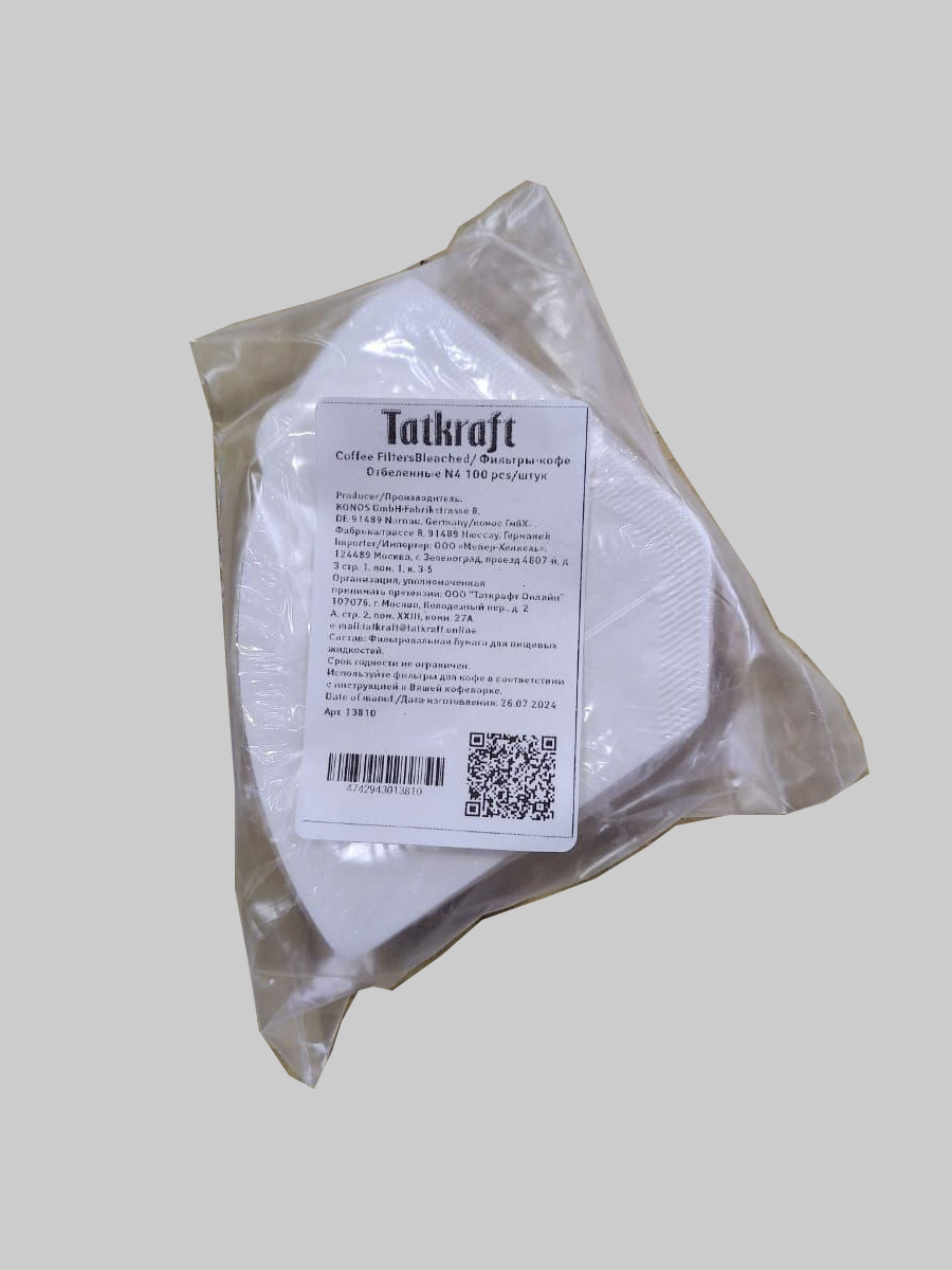 Фильтры для кофеварки TATKRAFT для приготовления кофе в капельных кофеварках, № 4, бумажные, отбеленные, одноразовые.
